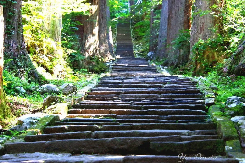 羽黒山の参道には、随神門から五重塔まで約2,446段の石段があります。