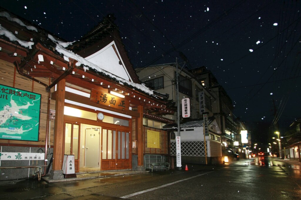 湯の流れる音、木の軋む音、風が障子を揺らす音。